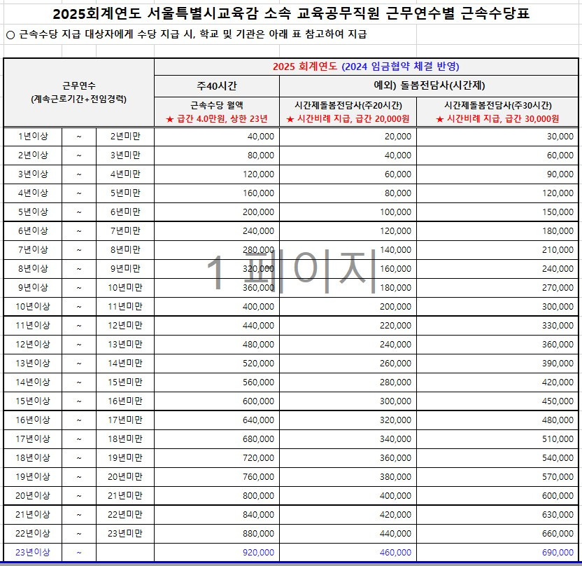 ✅ 근속수당: 40,000원씩 인상, 최대 92만 원까지 지급
